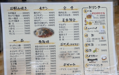 王道の豚玉・イカ玉に加え、てっちゃん鍋や焼きそば!