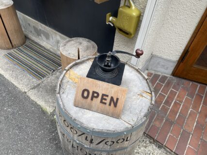 コーヒーミルがお出迎えしてくれているお店に到着します。