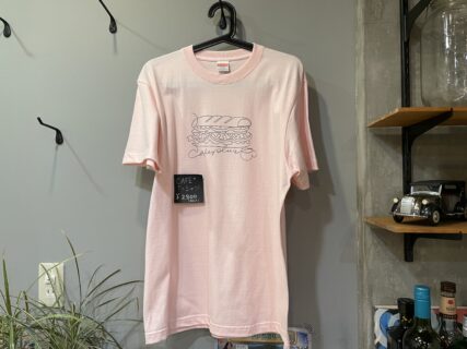 看板メニューのサンドイッチと店名が一本の線で描かれていて